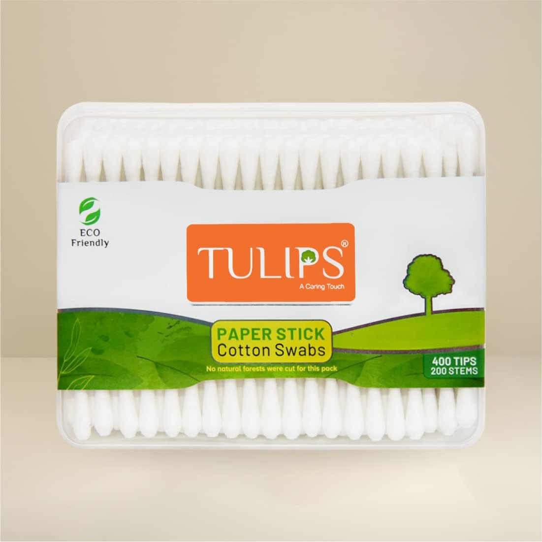 TULIPS Cotton Ear Buds/Swabs with white Paper Sticks 200 Tips in a Flat Box